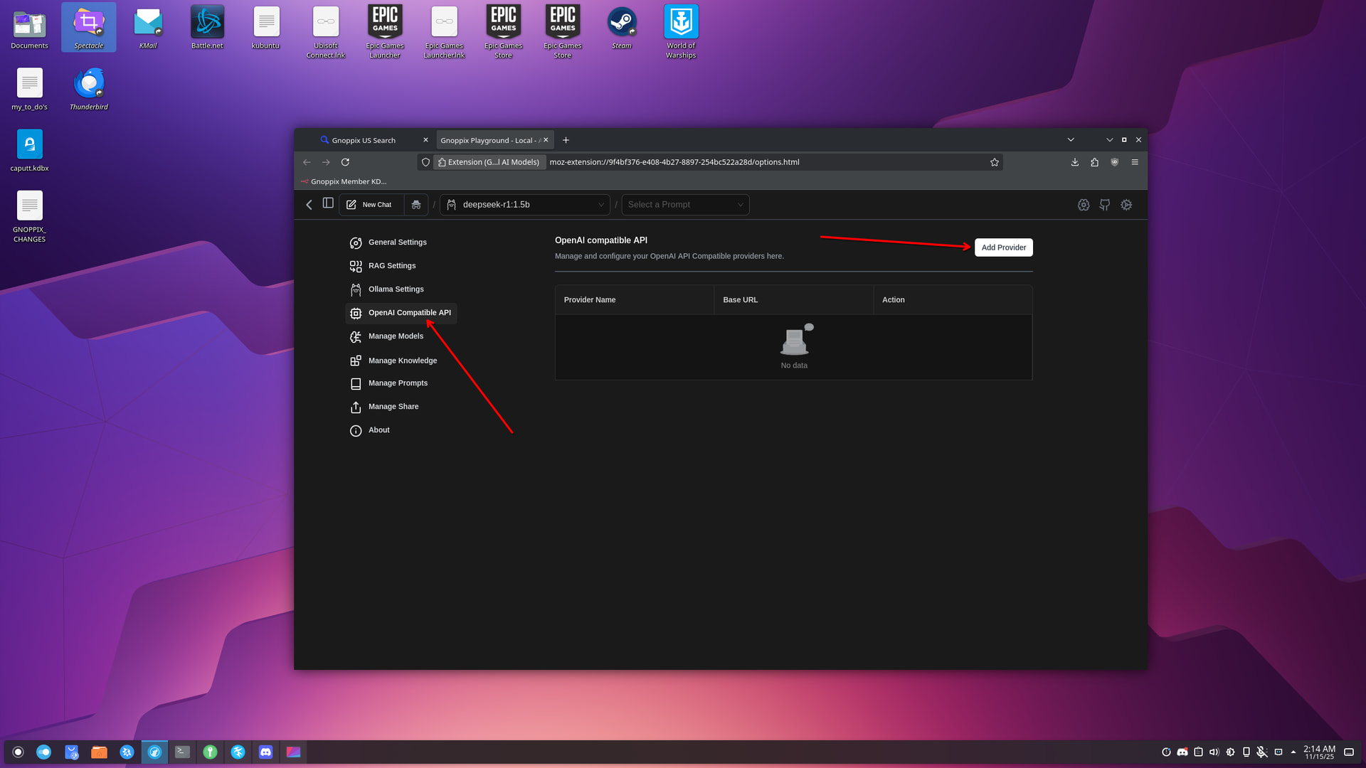 With Gnoppix 25.11 PRO and the Member images, we’ve introduced a new UI for GPT-like usage of Ollama as a browser extension that runs directly in your browser.