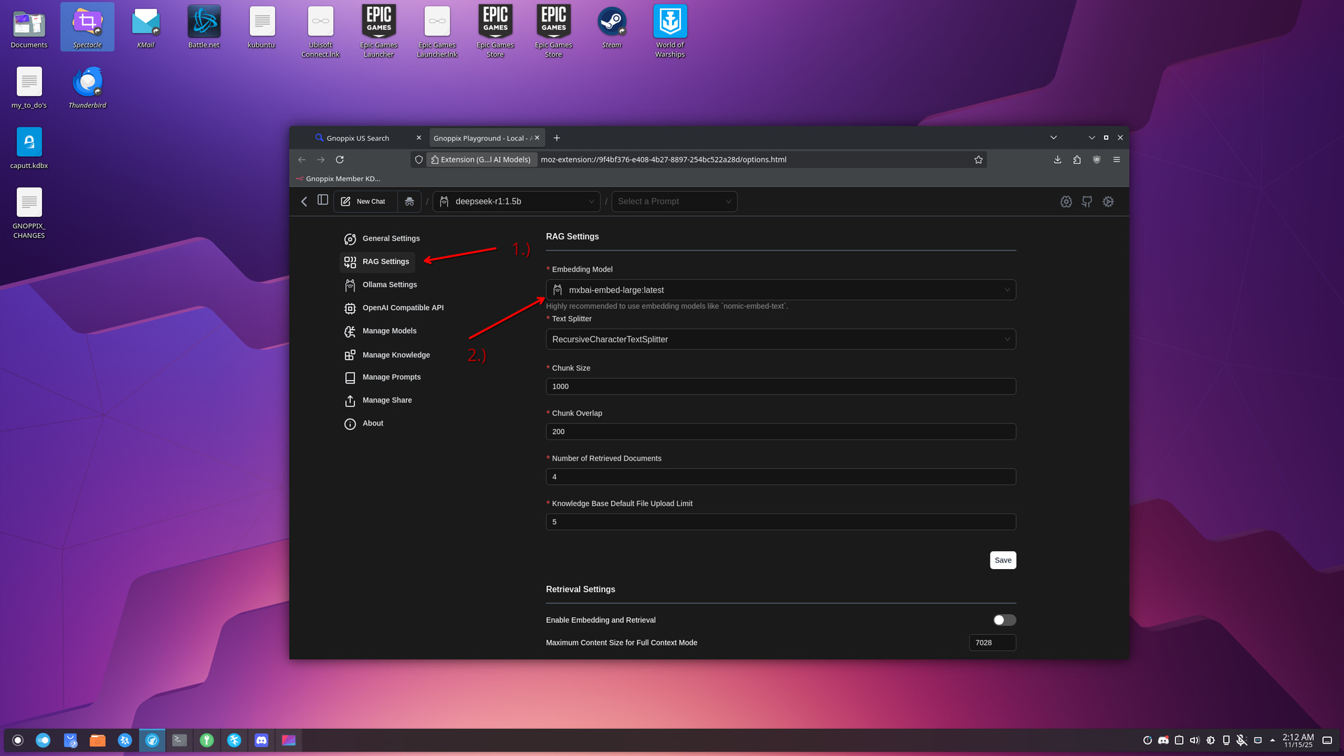 To configure RAG make sure the embed model (switching the embed models means in general re upload your documents!) This is already one of the best models incl. the paid one.